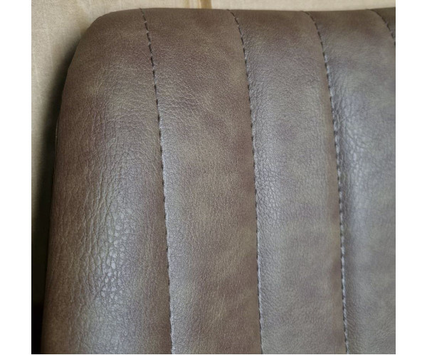Високий барний стілець, сидіння і спинка м'які, матеріал екокожа, що легко чиститься, колір коричневий під старовину, металева основа з підніжкою хромована, обертається і регулюється, основа внизу, ширина сидіння 42 см, глибина сидіння 36 см, максимальна висота від підлоги вгору спинки від 90 см до 112 см. Кількість у коробці: 2 шт.