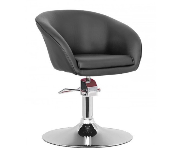 Крісло для перукарень, салонів краси, зручне м'яке сидіння, матеріал екошкіра, регулюється по висоті за допомогою гідравлічного підйомного механізму, хромована фурнітура, на блині діаметр якого 50 см, висота крісла від 76 до 86 см, ширина крісла 63 см, ширина сидіння 38 см, глибина сидіння 38 см, висота спинки 35 см, висота посадки від 46 до 56 см. Основа крісла зібрана. Кількість у коробці: 1 од.